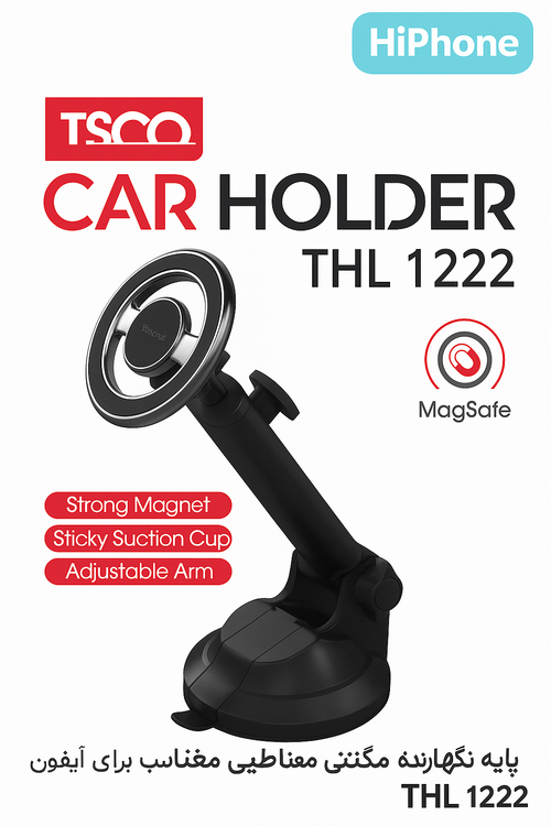 پایه نگهدارنده TSCO مدل THL 1222 یک پایهی قدرتمند و باکیفیت برای نگهداری گوشی موبایل در خودرو است. این محصول با قابلیت اتصال مغناطیسی سازگار با فناوری MagSafe و بازوی قابل تنظیم، انتخابی مناسب برای استفاده روزانه، رانندگی ایمن و دسترسی آسان به تلفن همراه شماست