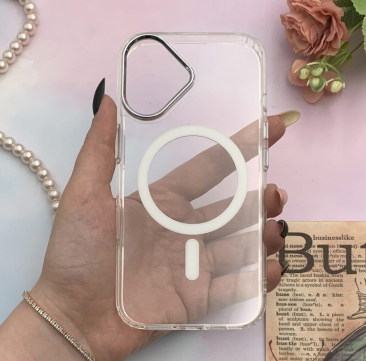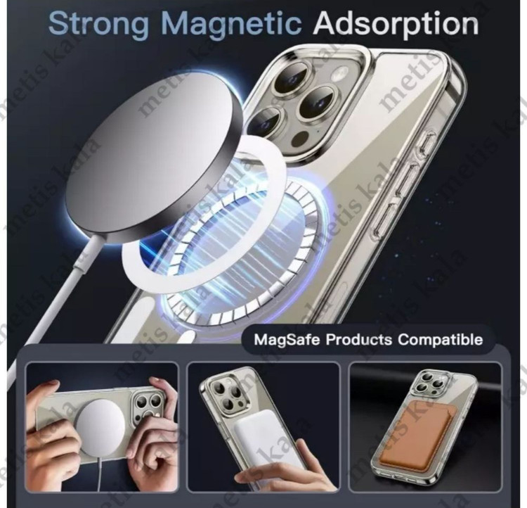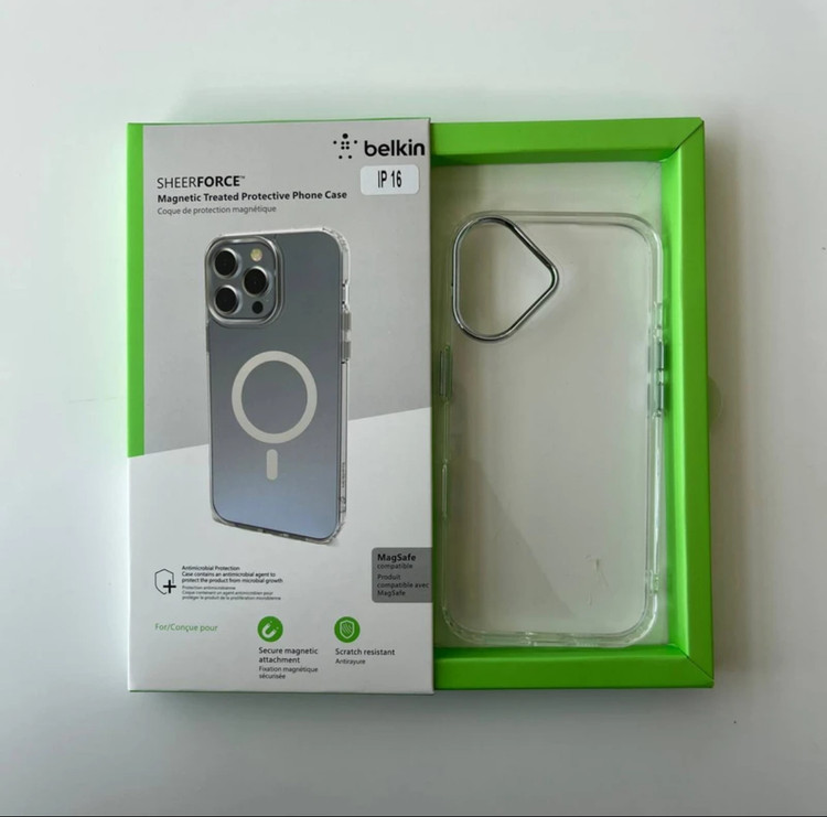 قاب گوشی Iphone 16 از برند بسیار معروف و با کیفیت بلکین Belkin . این قاب با قابلیت شارژر بی سیم وایزلش همان مگسیف است و شما را بی نیاز از شارژر سیمی می نماید. رنگ این قاب شفاف است. دور لنز و دکمه های قاب بصورت متال ساخته شده است.