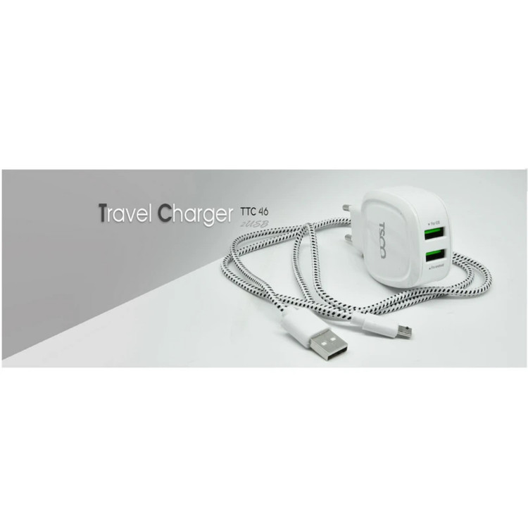 مدل «TTC 46» از نوع شارژرهاي ديواري برند تسکو است که داراي دو درگاه USB خروجي است. هرکدام از اين درگاههاي خروجي شدت جريان 2.1 آمپر توليد ميکنند.که اين مقدار علاوه براينکه گوشيهاي موبايل را با سرعت بيشتري شارژ ميکند، براي شارژ تبلتها هم مناسب است. ولتاژ ورودي اين شارژر ديواري 240-100 ولت بوده و وزن و حجم بسيار کمي دارد و بهراحتي حمل ميشود.همچنين دوشاخهي اين شارژر ديواري، متناسب با پريزهاي برق در ايران ساخته شده و نيازي به تهيهي تبديل براي آن نيست.